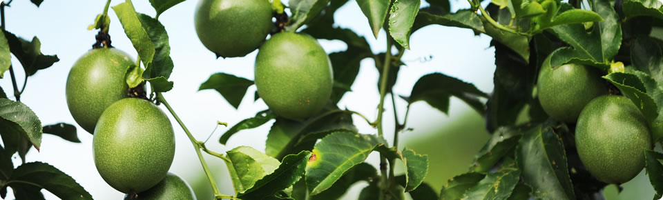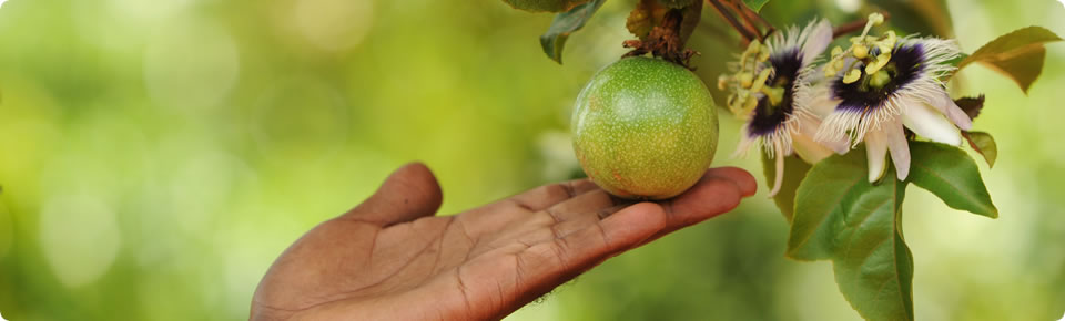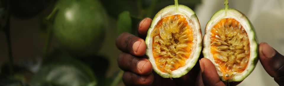 Das Lianengewächs lässt sich gut im Schatten größerer Bäume anbauen und rankt sich dort an Gestellen entlang wie bei uns der Wein. Die Früchte sind fast so groß wie Tennisbälle und werden geerntet, wenn die lederartige Haut beginnt sich lila zu verfärben. Erst dann ist sie reif. Richtig aromatisch, ja sogar süß, werden die Früchte erst, wenn die Schale beginnt schrumpelig zu werden. Man kann sie halbieren und das geleeartige Fruchtfleisch mitsamt den kleinen schwarzen Kernen löffeln. Vielen Menschen ist Maracuja pur zu säurehaltig. Sie mischen das Fleisch der Passionsfrüchte in Obstsalate, Joghurt, Speiseeis, Pudding und anderen Süßspeisen.